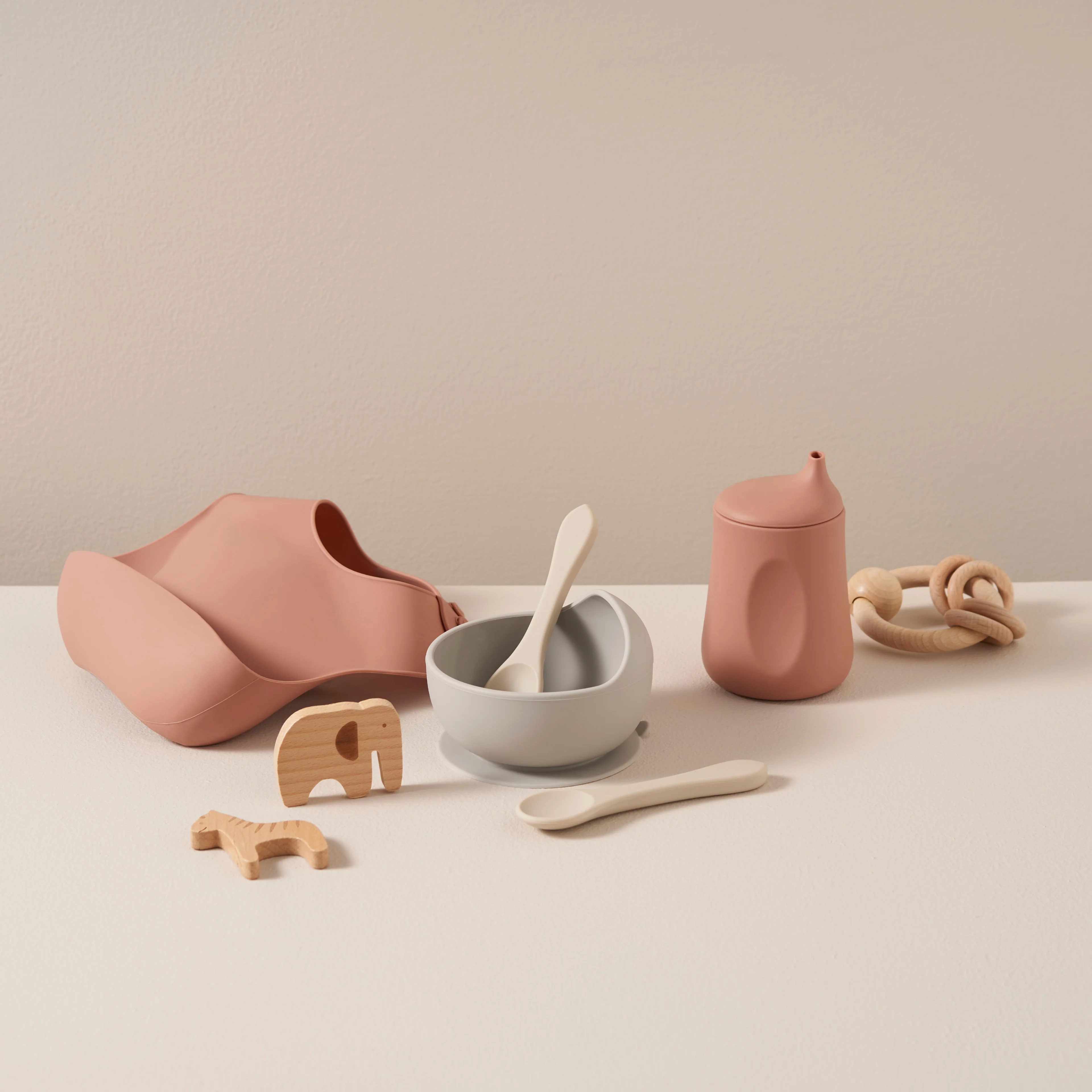 Start your little one’s weaning journey with our Scandi-inspired mealtime set. Perfect for little hands, the set includes a no-spill beaker, non-slip bowl, two easy-grip spoons and a catch-all bib.